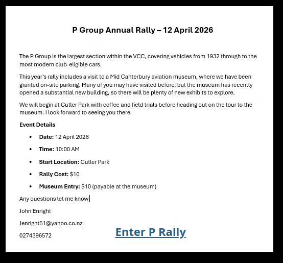 A week to get organised again, and then it was another full weekend taking part and helping with the VCC Canterbury Branch Annual Rally. No doubt someone else will report on this event elsewhere in the Hub. Needless to say it was another well organised Annual Rally with good runs on Saturday, an opportunity for a good social at the Kaiapoi Club that evening, and then field tests,