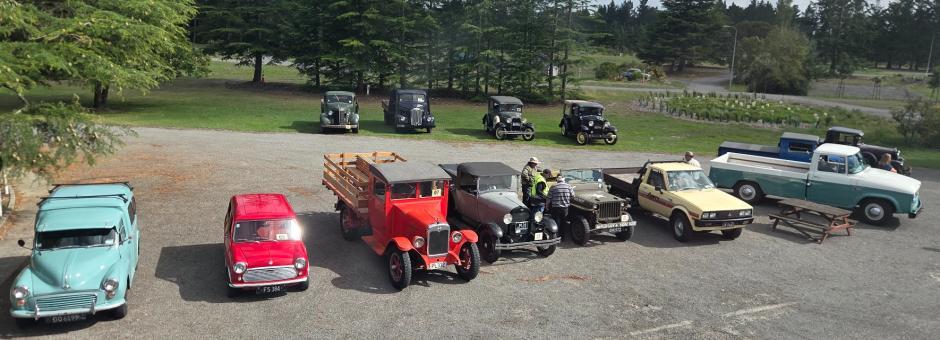 The next outing was the Veteran Car Club Annual Summer Rally, held in Geraldine this year, on the weekend of 14 & 15th February. Once again the weather looked pretty patchy, but Geraldine seemed to put on its own mix of sunshine and overcast conditions which actually suited us perfectly. Most of the participants arrived on Friday afternoon, and after settling in to our respective motels we all gathered at one of the local bars for a meal that evening. The next morning we assembled outside Geraldine Auto Restorations at 9.30 to get our instructions and prepare for our adventure for the day. Local member Austin Guerin had set the route, which took us north a few miles to Woodbury, and then travelled the back route to SH79 near Gapes Valley. Much of that route was shingle, but the roads were in pretty good condition, and also damp from some rain the day before so there was no dust to worry about. From Gapes Valley we carried on along SH79 through and past Kakahu Forest, tackling the two challenging hills along the way. We were glad that a long downhill section was in the early stages of reconstruction with a 30km/h speed limit in place, as it meant we weren’t responsible for holding up modern traffic which included a few tour buses and campervans. Although we were very slow on the uphill sections, most seemed to be patient and waited to overtake in safe places. We then turned off at Mulvihill Road and doubled back to the south side of Kakahu Forest and to our lunch stop at Kakahu Angus Stud. Lots more gravel in this section with a few very rough patches requiring a bit of care. At