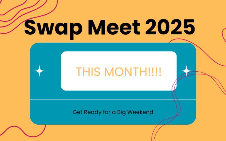 10th 11th and 12th October is swap meet. If you can please spare a couple hours, please give Colin Hey a call.