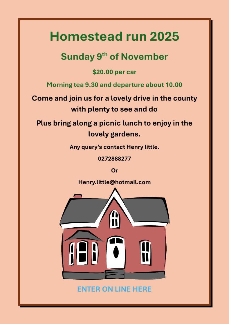 Tuesday 14th October - Veteran Coffee at Thirsty Acres, Kirwee, 11am. Come and brag about the lucky finds you had at Swap Meet.