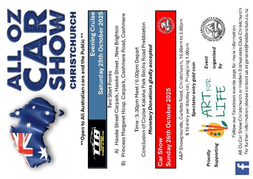 Well in approximately one week we are around to the busiest full week of activities preparing the grounds an infrastructure for the big weekend 10,11,12 Oct 2025. VOLUNTEERS are still required over the weekend a couple of hrs is all we require come on folks give it a go. Contact Colin Hey 021 883 807.