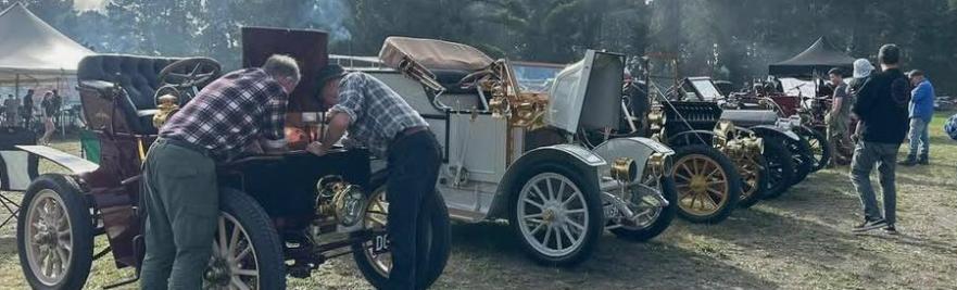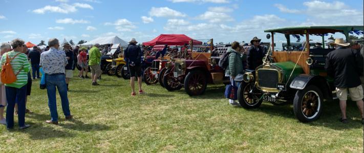 This month Veteran activities have started kicking into gear now that the warmer weather has arrived. The first outing was a Veteran Car Club run, joining with the Model T club to attend the Amberley Rock’n Wheels show on Sunday 7th September (Fathers Day). We assembled outside the Sefton Pub at 10am on a glorious sunny Spring day, and drove up to Amberley on the Sefton to Amberley Road from there – a good run of 15km. The team on the gates had a good system going to check everyone in and there were no delays at all, so we were soon parked in the domain, which by then was rapidly filling with cars. By around 11.30 am there apparently had been 850 cars checked in, all makes and models and mostly from the 1950’s to modern in age. We managed to park the veteran cars together, and were joined by a few vintage cars as well. A short while later one of the organisers arrived and thanked us for bringing these cars out, as they haven’t really featured at shows in the past. It was good that we were appreciated. By 1.30pm it became clear that the main part of the show was over and that many of the cars were leaving, so it was decided that we should probably do the same. We returned to Sefton the same way we’d come, but the trip wasn’t quite as enjoyable as the morning run due to the amount of traffic from the show that had also chosen to go that way. It just meant keeping a close eye on the rear-view mirror and trying to stay left on what was quite a narrow carriageway and let the traffic overtake as easily as possible. Still a very good day out though. A week or so later we had another excellent turnout to Septem-
