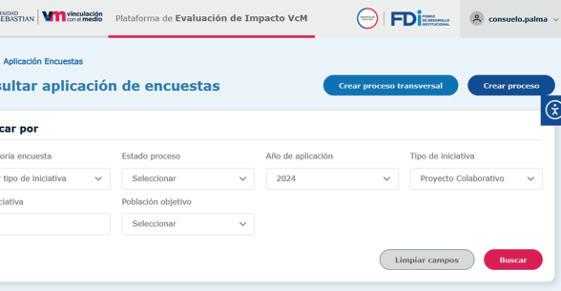 Una vez en el sitio, deberás crear un proceso de aplicación, presionando el botón “Procesos de aplicación de encuesta” y luego el botón “Crear proceso”.