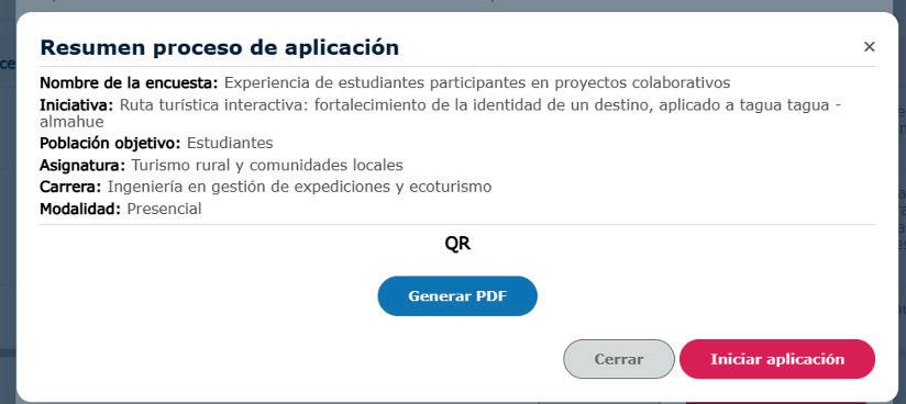 Hasta ahora has creado el proceso de aplicación, pero aún NO has realizado la aplicación de la encuesta en sí. A partir de este momento, podrás comenzar la aplicación el día y hora que desees.