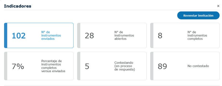 Esta información te permite conocer cuántas personas han respondido la encuesta, por tanto, puedes decidir reenviar una encuesta a las personas que no han contestado, si se trata de modalidad online (con la restricción de que puedes reenviar dos veces).