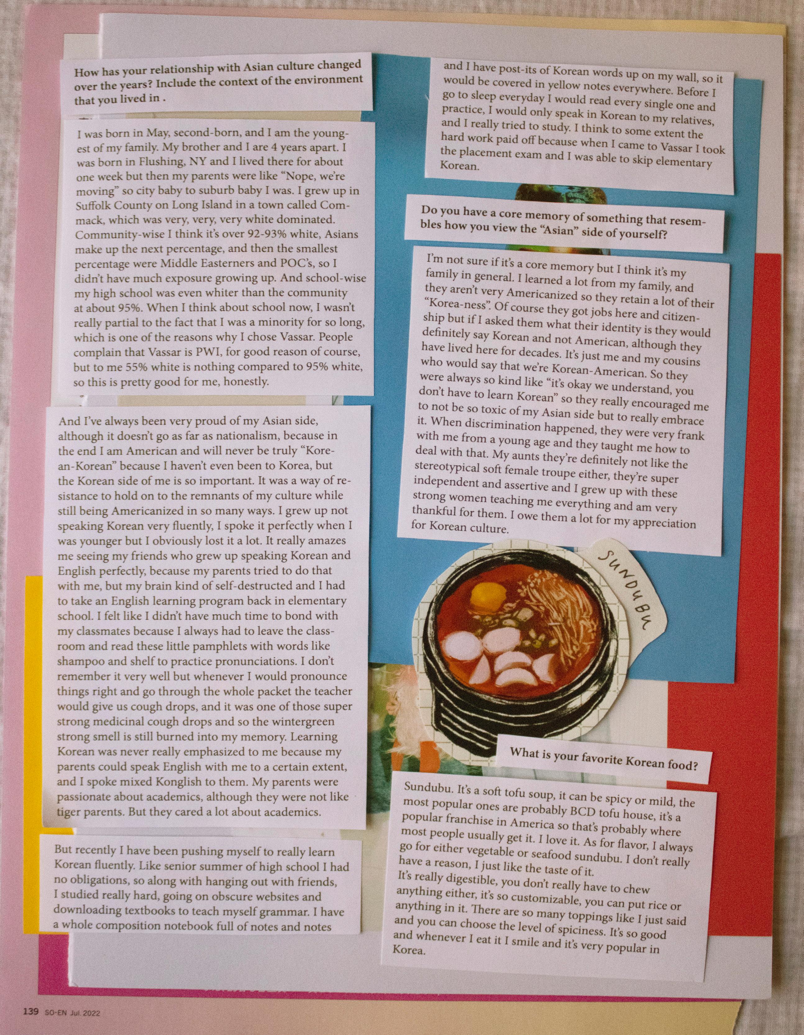 It wasn’t until coming to Vassar that I realized something about myself. Going to Portrait meetings, talking to other Asians, and actually engaging felt good. I don’t have to break myself up into bits and pieces of an identity just to fit in somewhere.