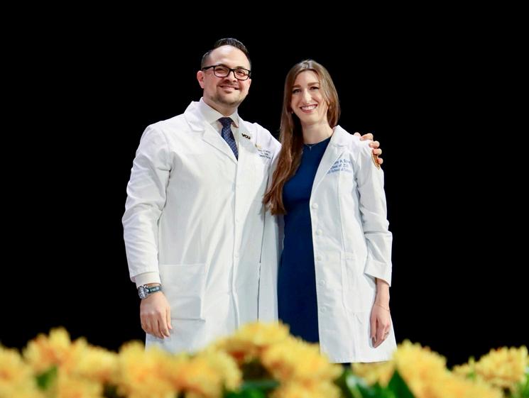 Our names were read, coats were put on, and the Honor Code was signed. My personal goal for the day had simply been not to fall on my face in front of the professors and dean who had taught me so much— and I am relieved to report that I succeeded. I smiled as I heard how loudly my family cheered for me as I received my white coat from Dr. Awab Abdulmajeed and shook hands with Dr. Sarah Glass, Dr. Howard Baranker, and Dr. Michael Healy on my way off the stage.