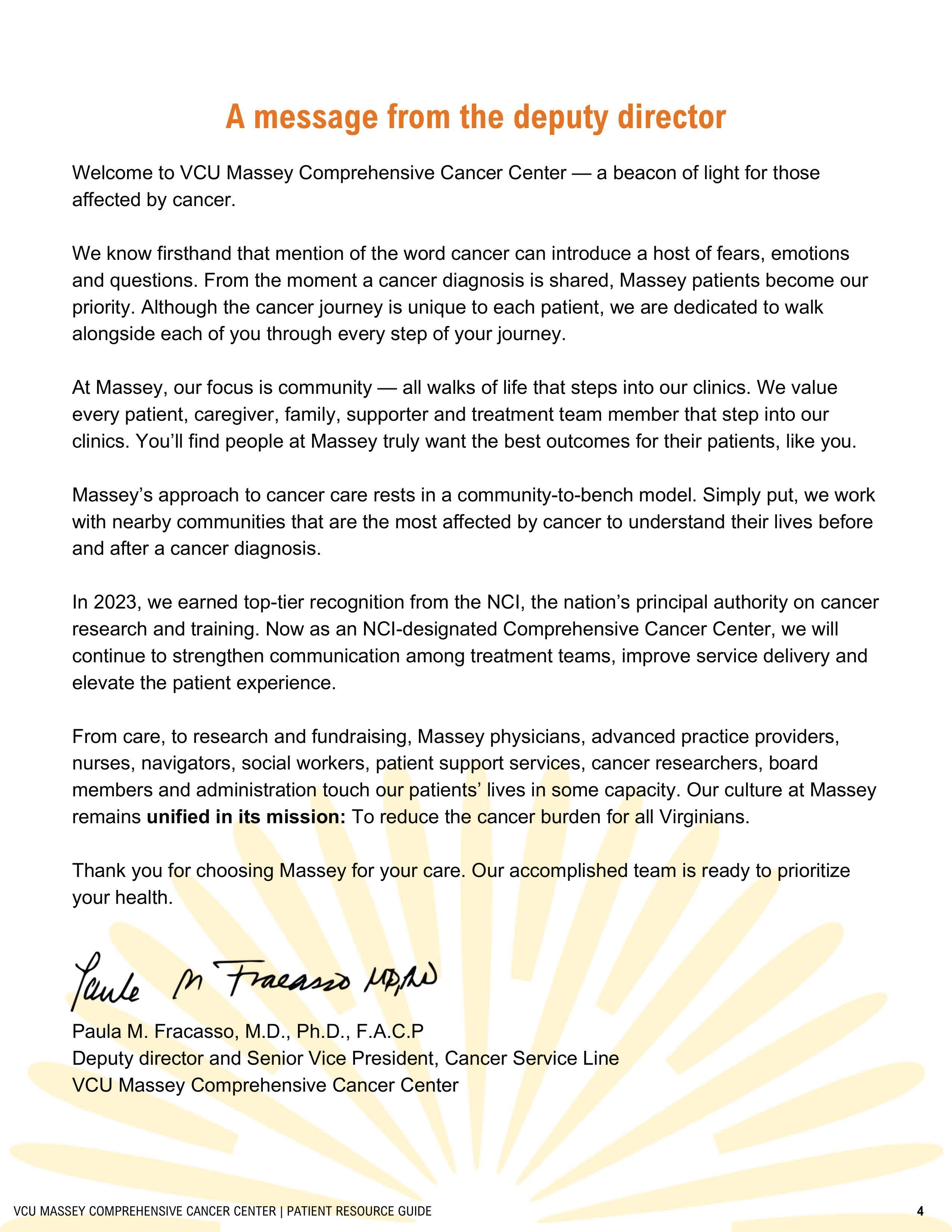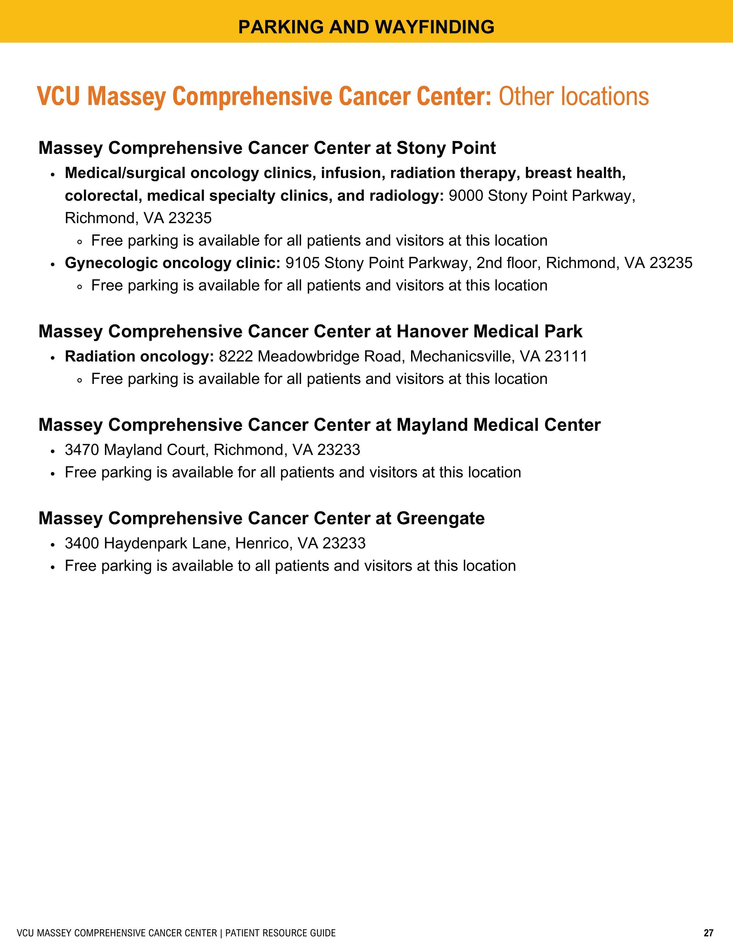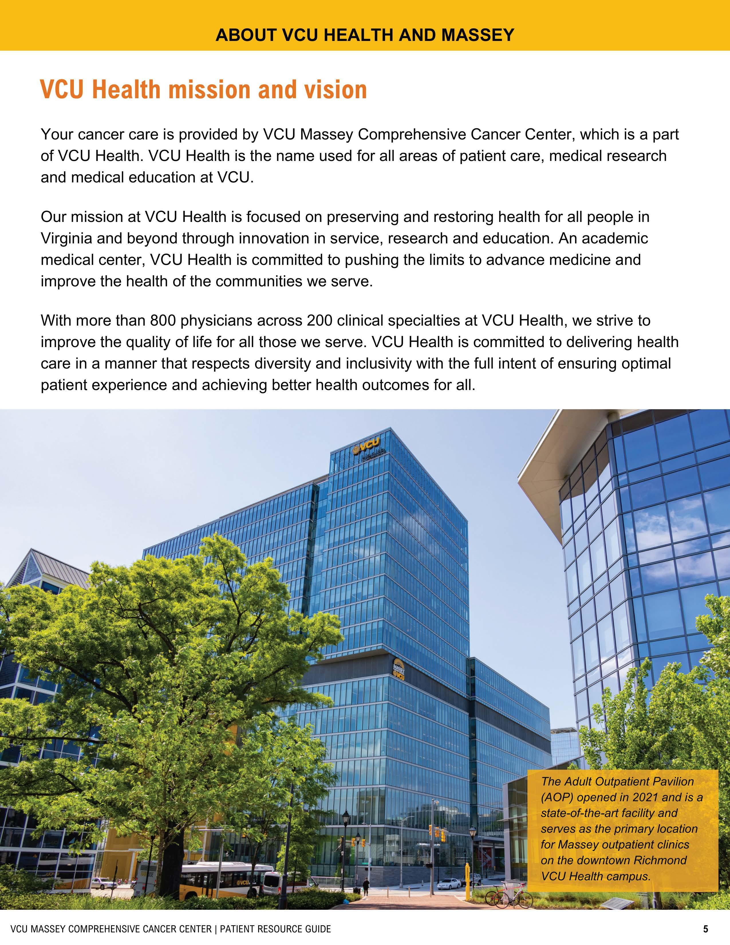YourcancercareisprovidedbyVCUMasseyComprehensiveCancerCenter,whichisapart ofVCUHealth.VCUHealthisthenameusedforallareasofpatientcare,medicalresearch andmedicaleducationatVCU.