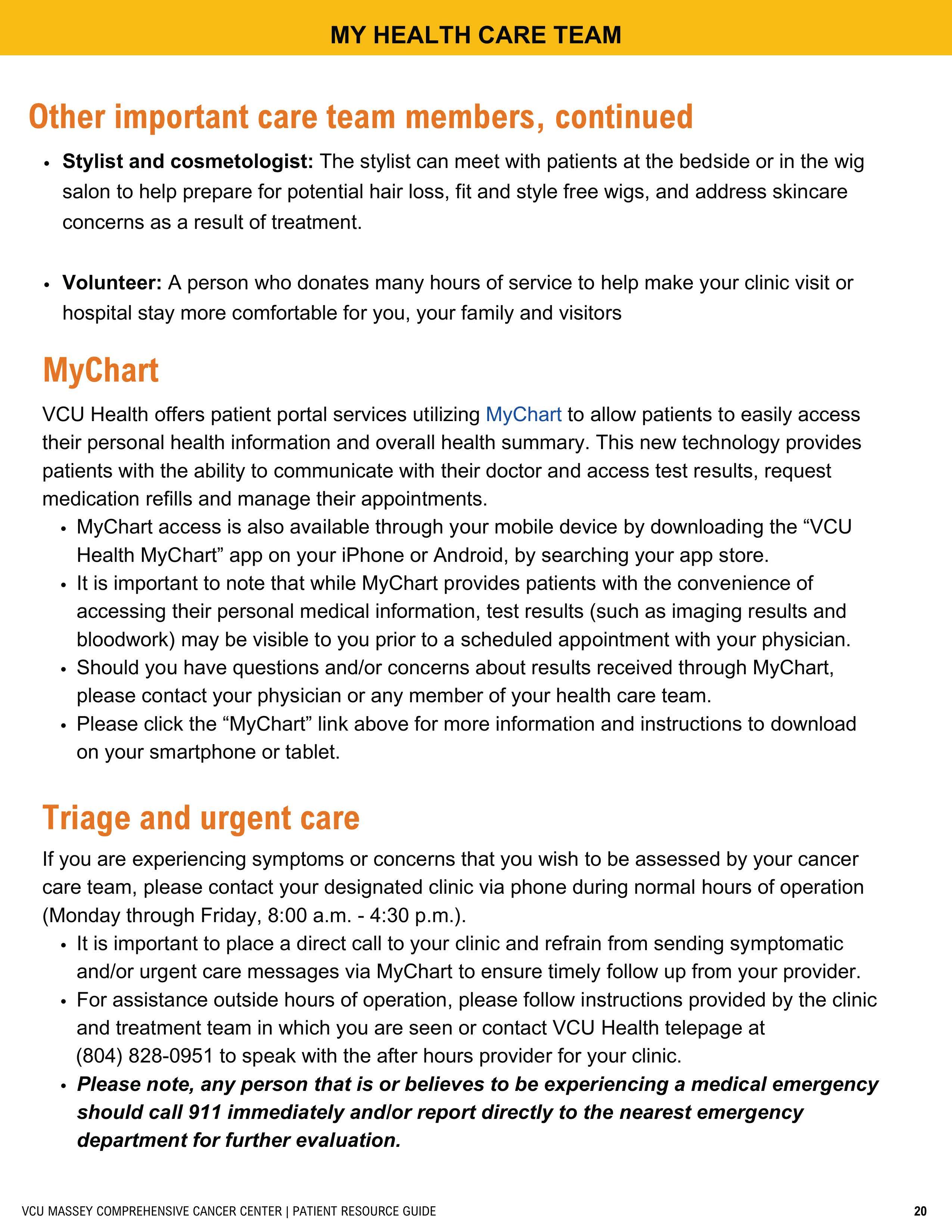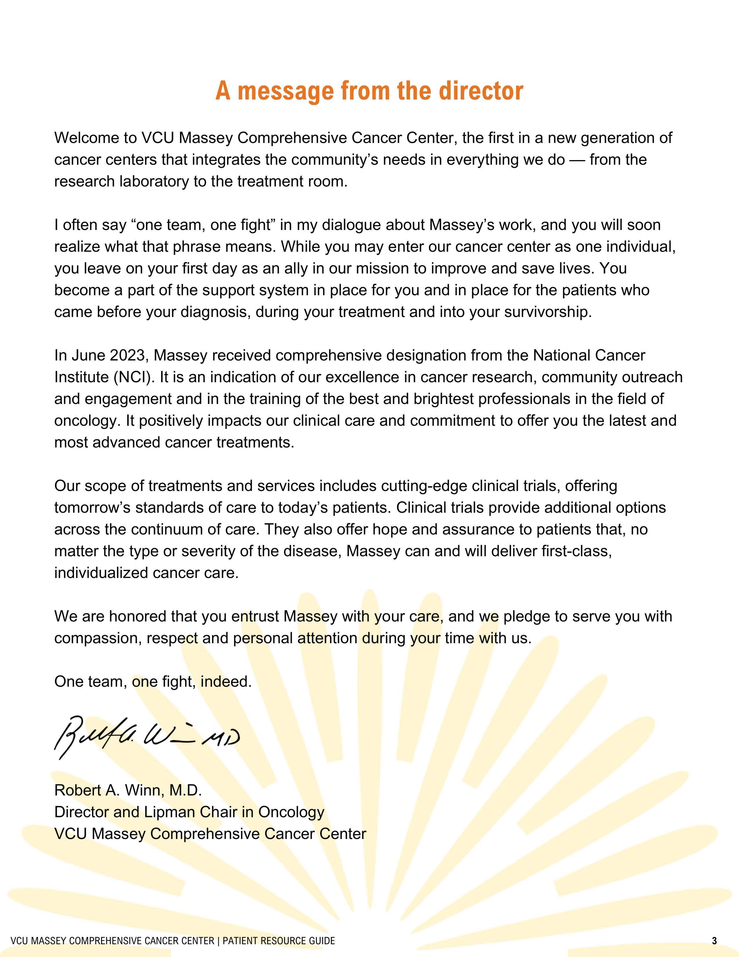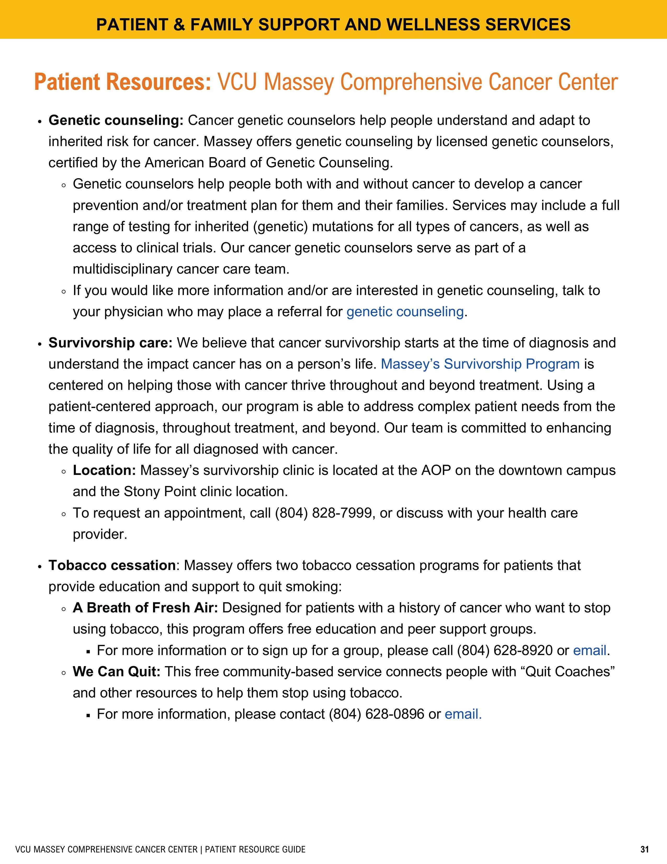 YourcancercareisprovidedbyVCUMasseyComprehensiveCancerCenter,whichisapart ofVCUHealth.VCUHealthisthenameusedforallareasofpatientcare,medicalresearch andmedicaleducationatVCU.