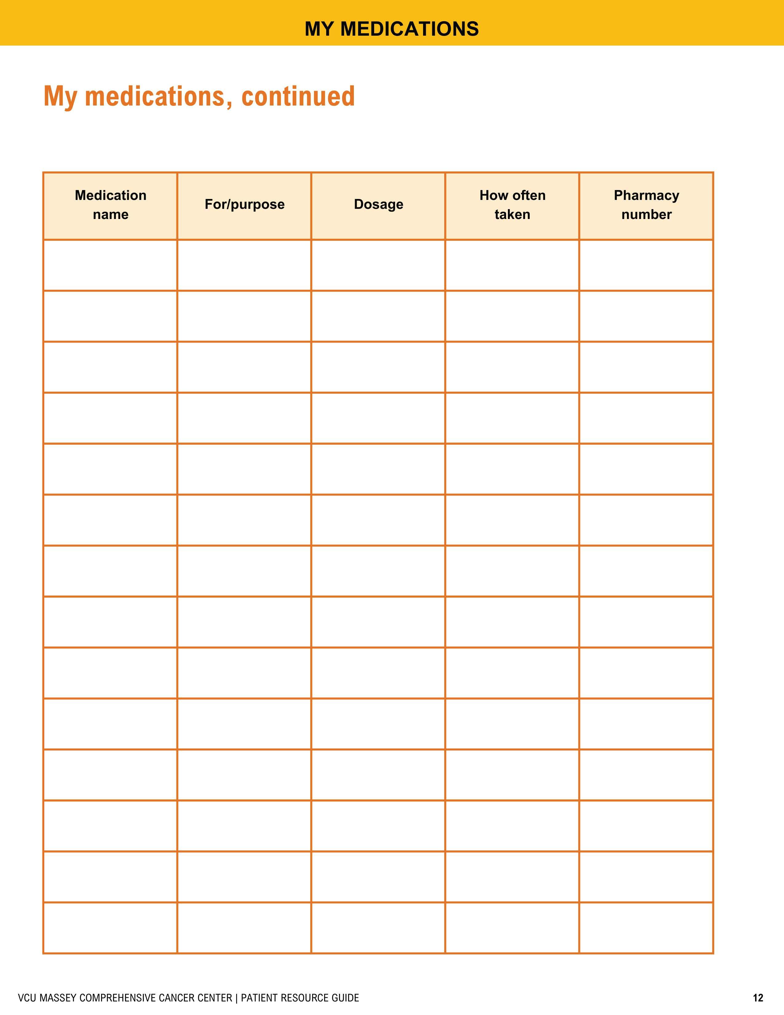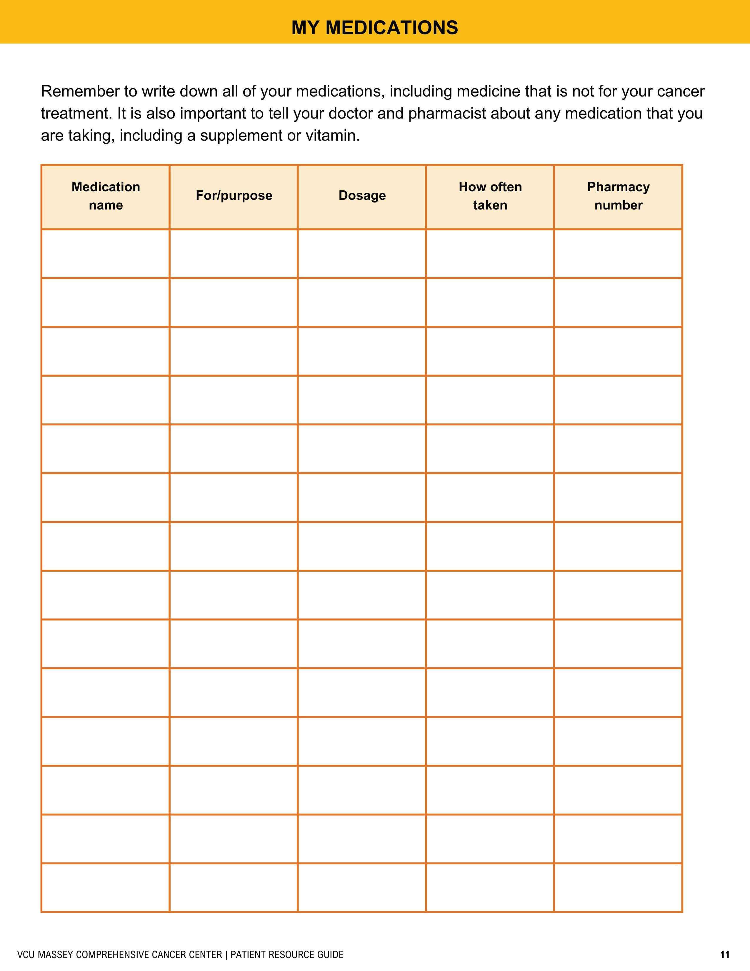 Remembertowritedownallofyourmedications,includingmedicinethatisnotforyourcancer treatment.Itisalsoimportanttotellyourdoctorandpharmacistaboutanymedicationthatyou aretaking,includingasupplementorvitamin.