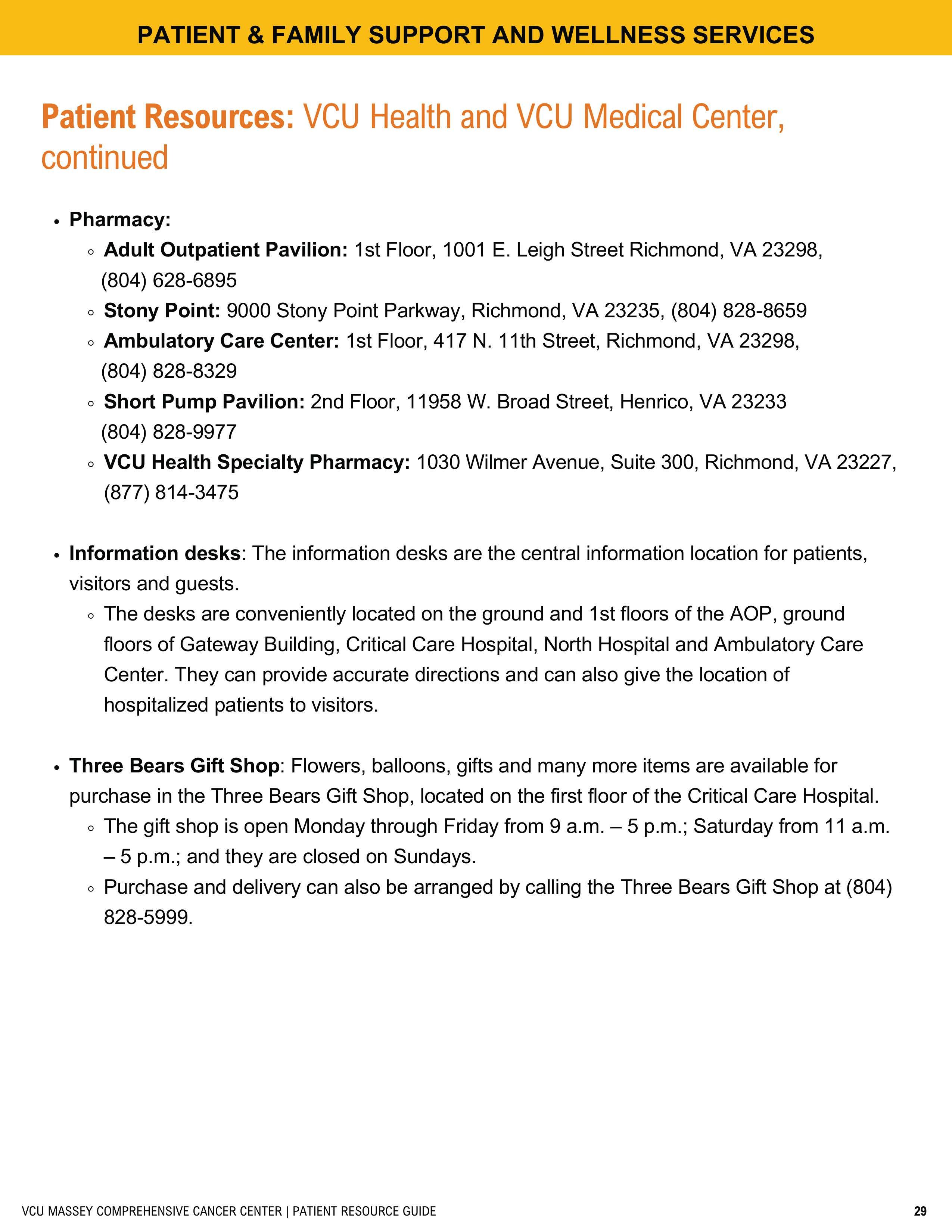 o PatientResourceCoordinator,VCUMedicalCenter,Box980143,Richmond,VA 23298(804)628-0400