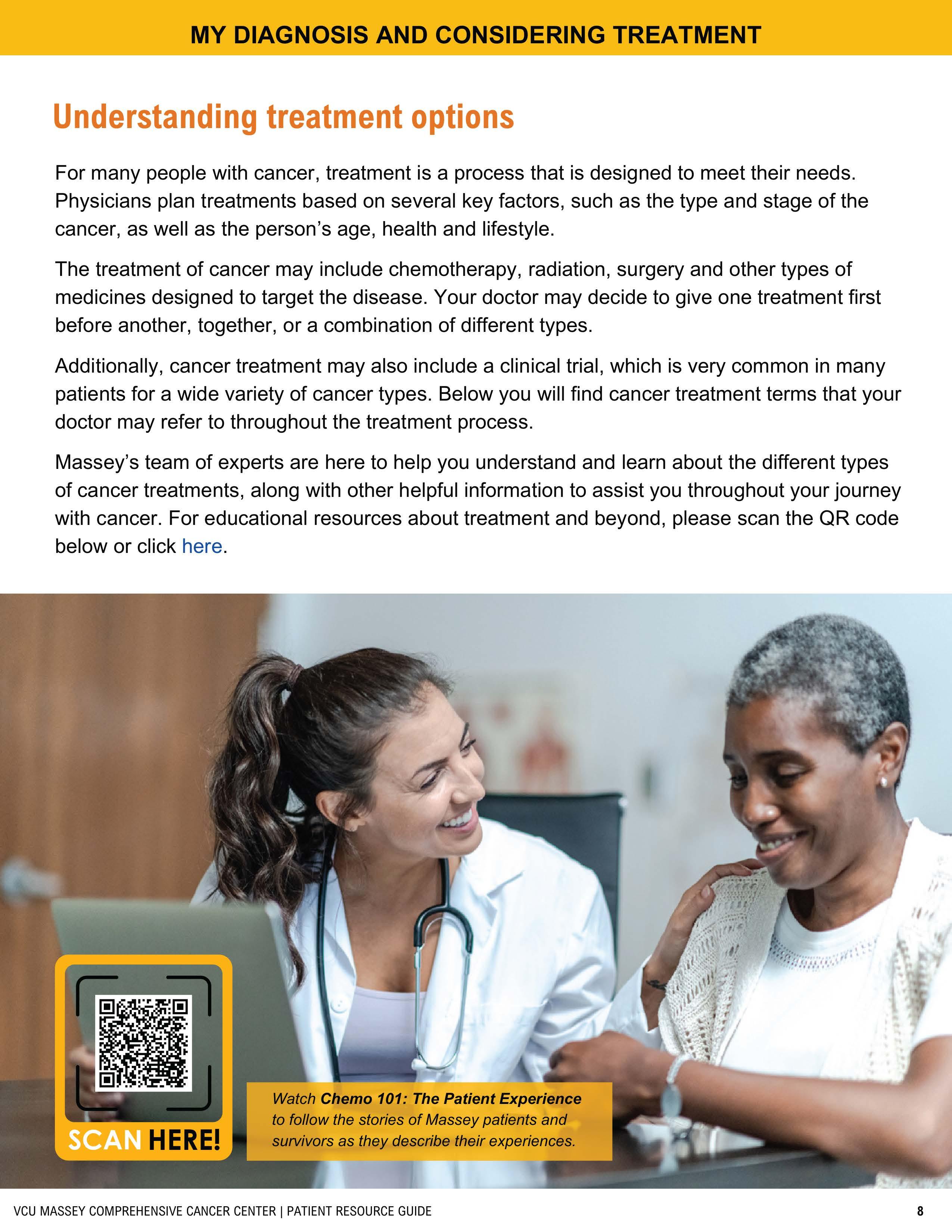 Massey'steamofexpertsareheretohelpyouunderstandandlearnaboutthedifferenttypes ofcancertreatments,alongwithotherhelpfulinformationtoassistyouthroughoutyourjourney withcancer.Foreducationalresourcesabouttreatmentandbeyond,pleasescantheQRcode beloworclickhere.