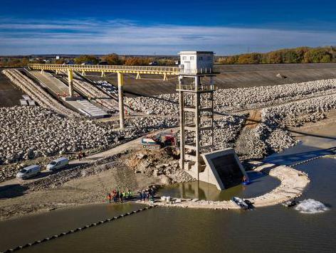 Ce sont les travaux de renforcement de la digue de la Morge sur sa partie la plus basse qui ont nécessité la vidange exceptionnelle du lac d’Orient dans sa quasitotalité. Appuyée sur ce barrage de 24 mètres de haut, la tour de restitution d’où l’eau est évacuée vers le canal de la Morge qui la rend à la Seine en amont de Troyes.