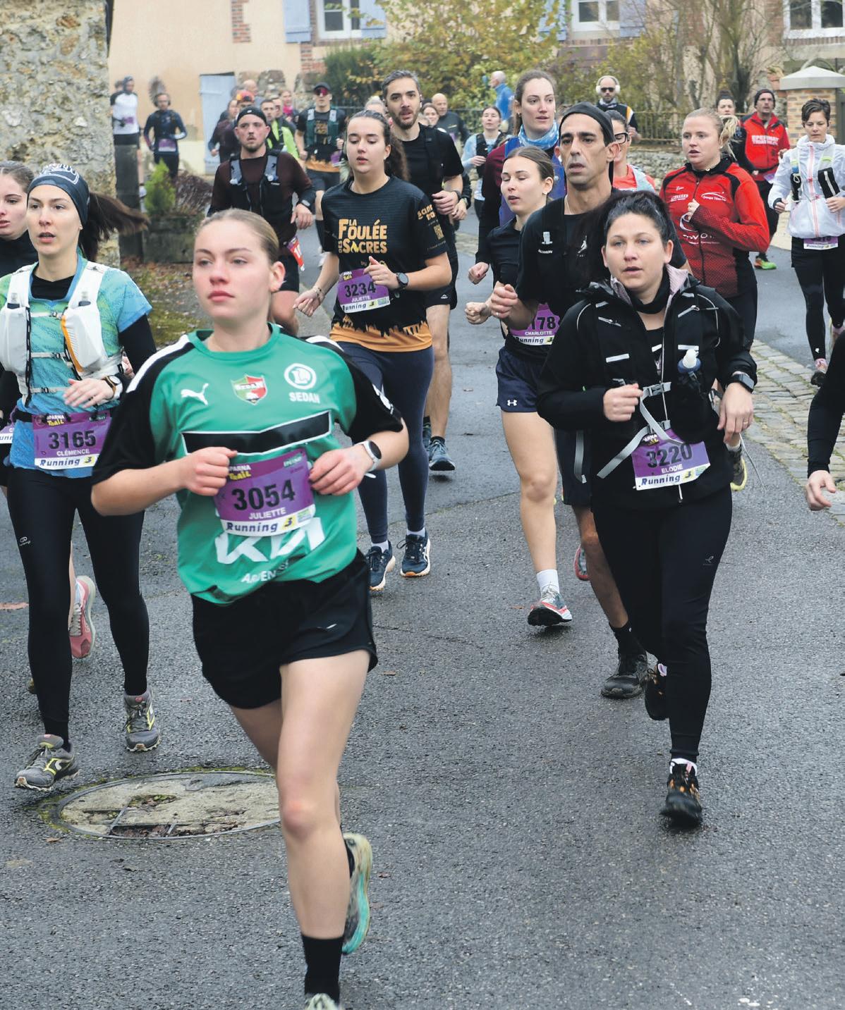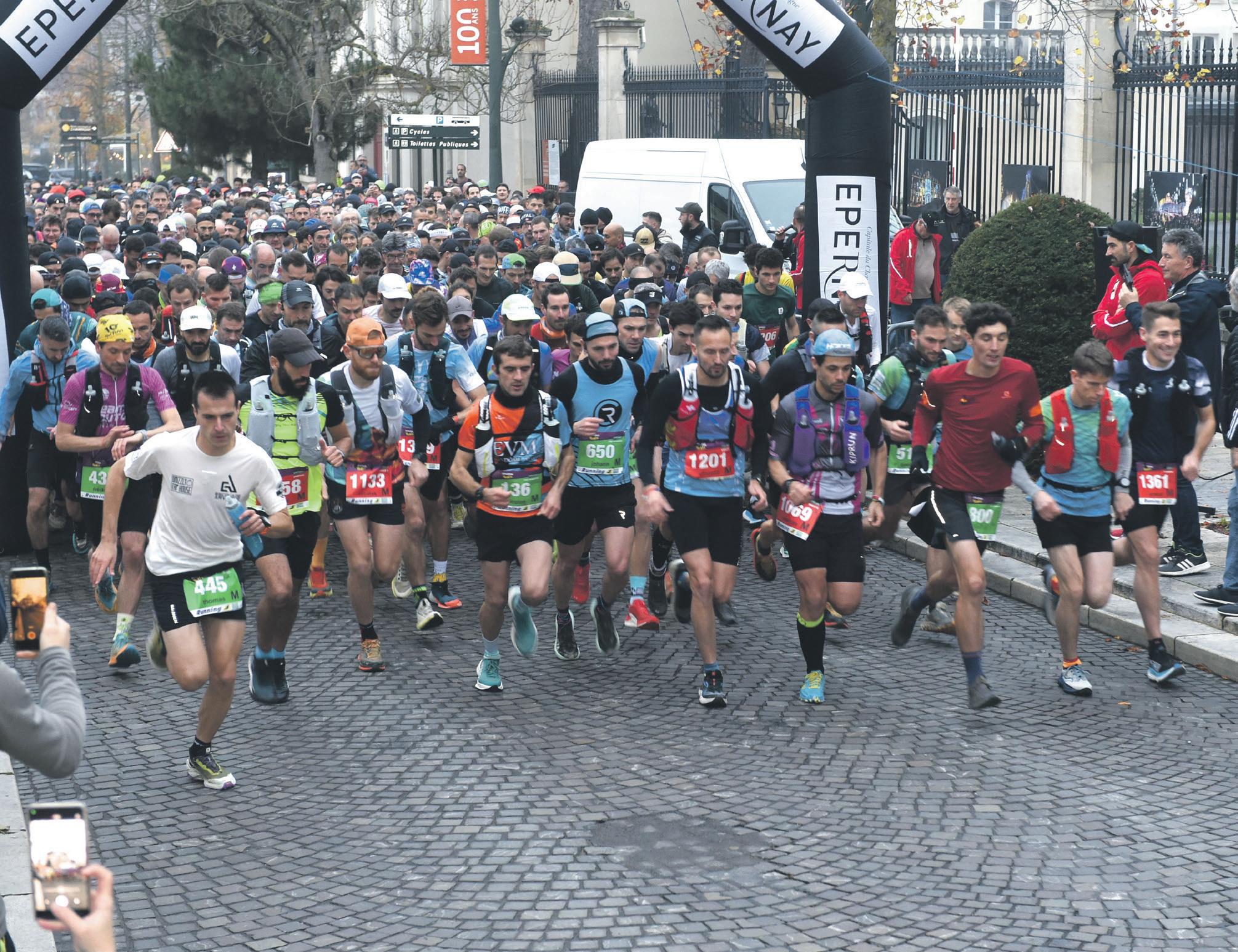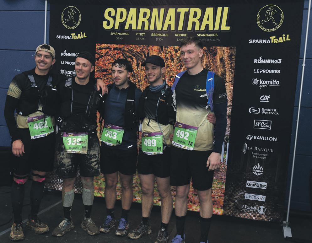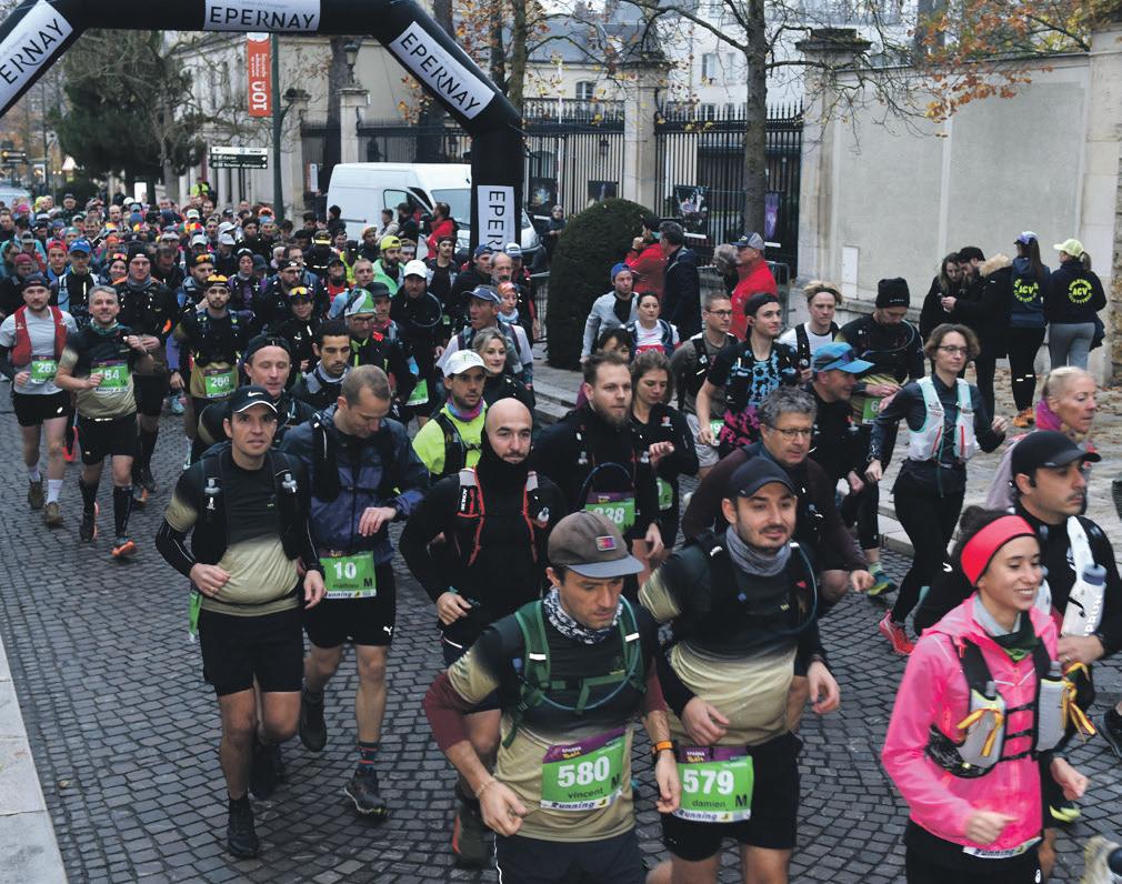 57 km et du P’tiot (33 km). À 10h et 10h30, le village de Vauciennes lançait la Rookie (12 km) et le Bernaou (17 km). Près de 140 bénévoles ont épaulé Bertrand Robinet, qui, en présence de Franck Leroy, président de région, a donné le grand départ de la 29e édition avenue de Champagne. Avec la modification du 62 km ramené à 57, les coureurs se disent satisfaits, la course ayant affiché complet. L’objectif était de retrouver l’esprit du Sparnatrail d’avant Covid. Bertrand Robinet se félicite : « Nous avons fait le plein avec 2200 inscriptions sur les quatre courses : 400 sur le 57 km, 800 sur le 33 km (le P’tiot), 600 sur le Bernaou de 17 km et 400 sur la Rookie de 12 km. Les conditions de course