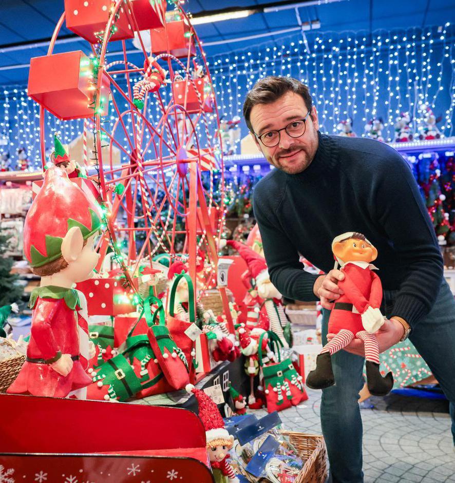 Paul Pageau, propriĂ©taire de lâhypermarché Leclerc de SaintÂBriceÂCourcelles, ici dans le petit village de NoĂ«l conçu au sein du magasin. Photos AurĂ©lien Laudy