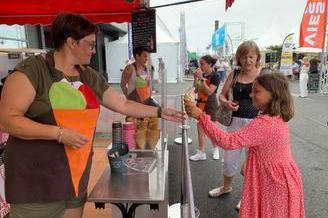 LE TEMPS EST LOURD en ce jour d’ouverture de foire. Rien de tel qu’une bonne glace à l’italienne pour se rafraîchir. Situé devant l’espace congrès, le stand de glaces Becel fait le plein de clients. Si certains optent pour un cornet audacieux à base de Nutella et de chocolat blanc, beaucoup restent sur des classiques intemporels : vanillefraise.