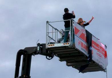 Sortie de scène originale à bord d’une nacelle à la fin du concert.