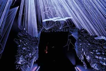 En cave, on découvre l’œuvre d’Hugo Gattoni sur les différentes étapes d’élaboration du champagne, avant de suivre dans les crayères le fil d’Ariane de Patricia Urquiola, inspiré du muselet dont elle a repris puis amplifié le mouvement.