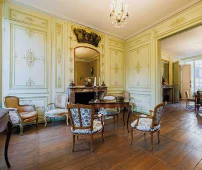 Vient ensuite le salon d’apparat. « C’est une réplique du grand salon qui se trouve dans l’hôtel de Bourvallais, place Vendôme, où se trouve aujourd’hui le ministère de la Justice », révèle Jean-Christophe Gobillard, ajoutant que les dimensions de la pièce répondent à la règle d’architecture d’intérieur, dite « du dixième », proche du nombre d’or, soit une hauteur de plafond égale au dixième de la surface, ici 4,10 m pour 41 m². En prime, un lustre du XVIIIe en cristal de Baccarat, et une cheminée en marbre de Carrare à feuilles d’acanthe.