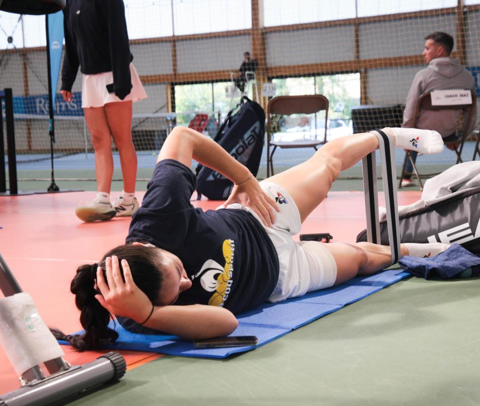 Le matériel de stretching a été mis à la disposition des joueuses dans un espace dédié à la détente. R.W.