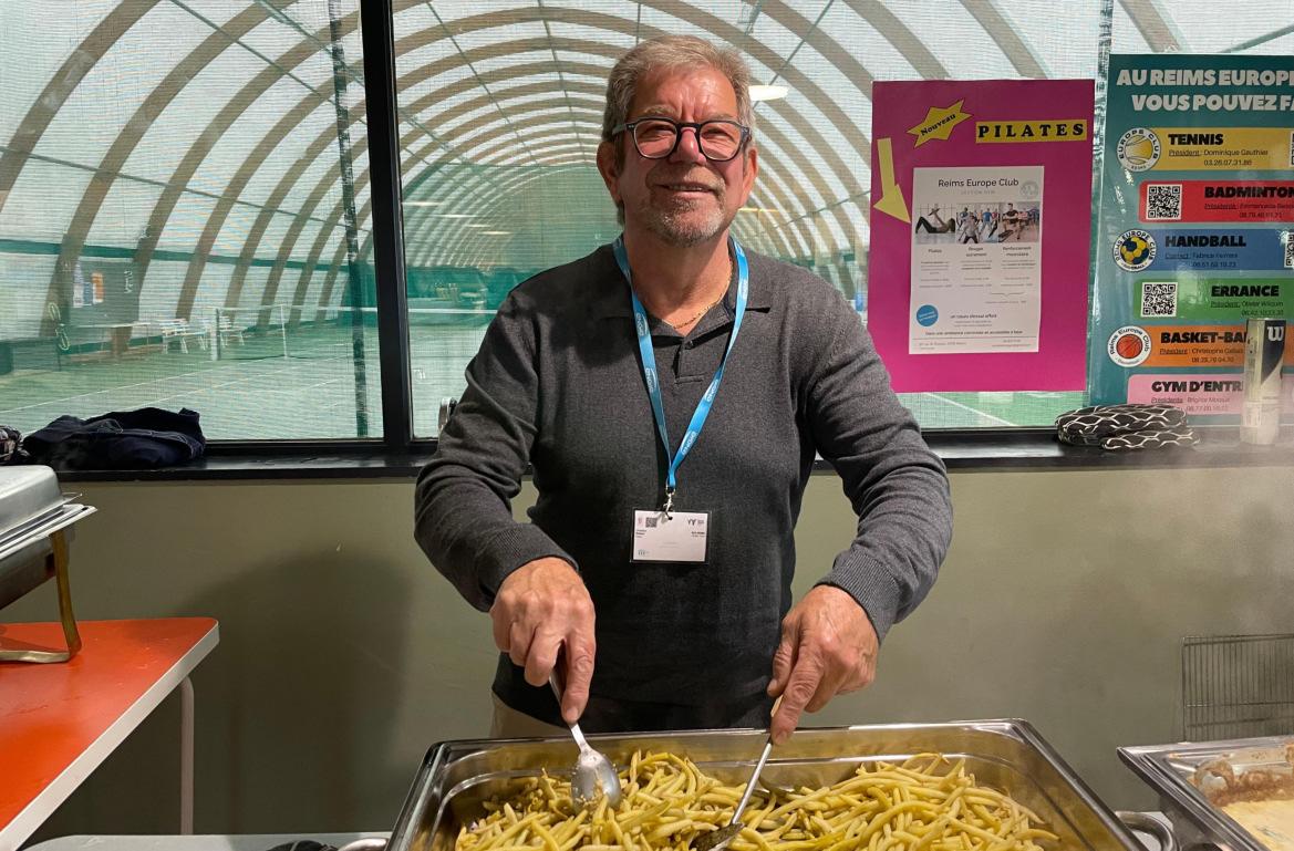 Pendant l’intégralité du tournoi, Christian Dufour a un rituel: il appelle le traiteur à 7heures pour passer la commande du jour, qui sera livrée trois heures plus tard. Responsable de la restauration depuis 2022, mais bénévole de la première heure, l’ancien cuisinier sert environ 80 repas par jour, secondé par MarieAnge Comarlot, Béatrice Point, Odile et Philippe Petitcolin. « On s’entend bien dans notre équipe, se marre le viceprésident du Comité de la Marne en charge du secteur d’Épernay, installé