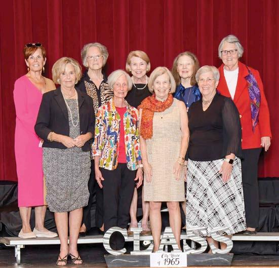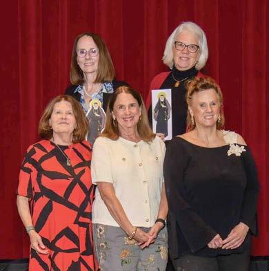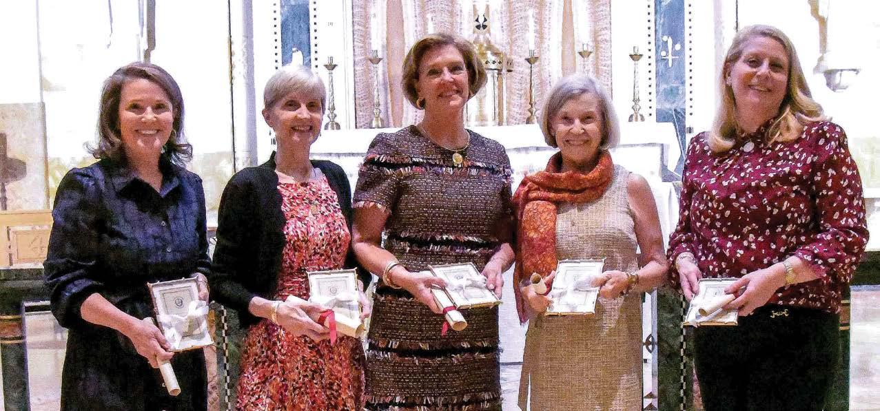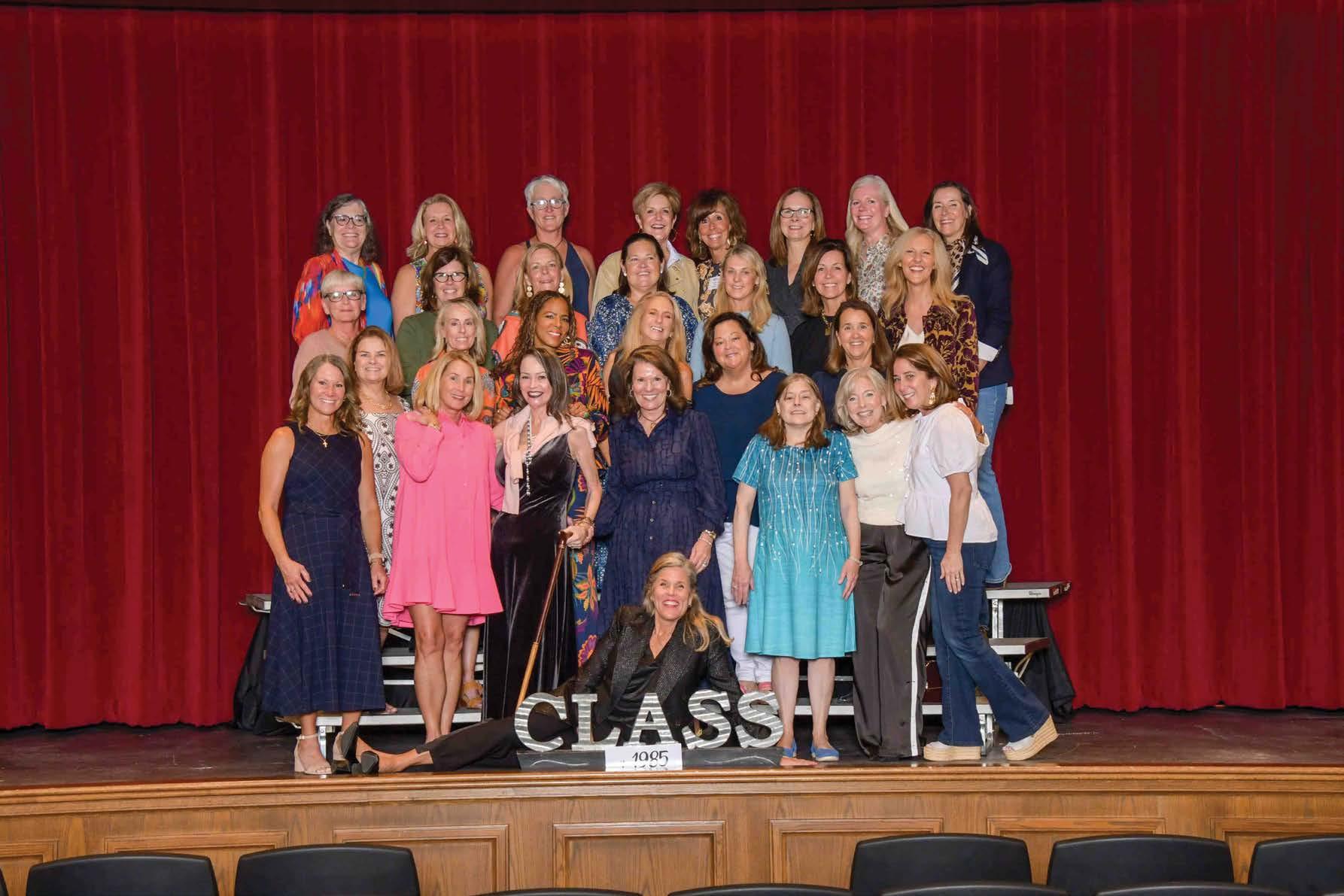 2025 Très Bien recipients L to R: Mary Catherine McDaniel Leeker ’85, Ellen Woerner Walther ’75, Martha Morris Kendall ’75, Kathy Rogers Coffey CH ’65, and Cady Ottolini O’Grady ’90.