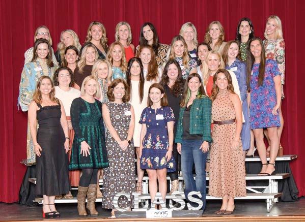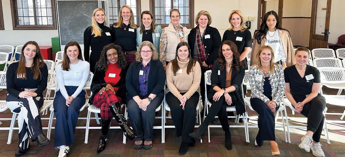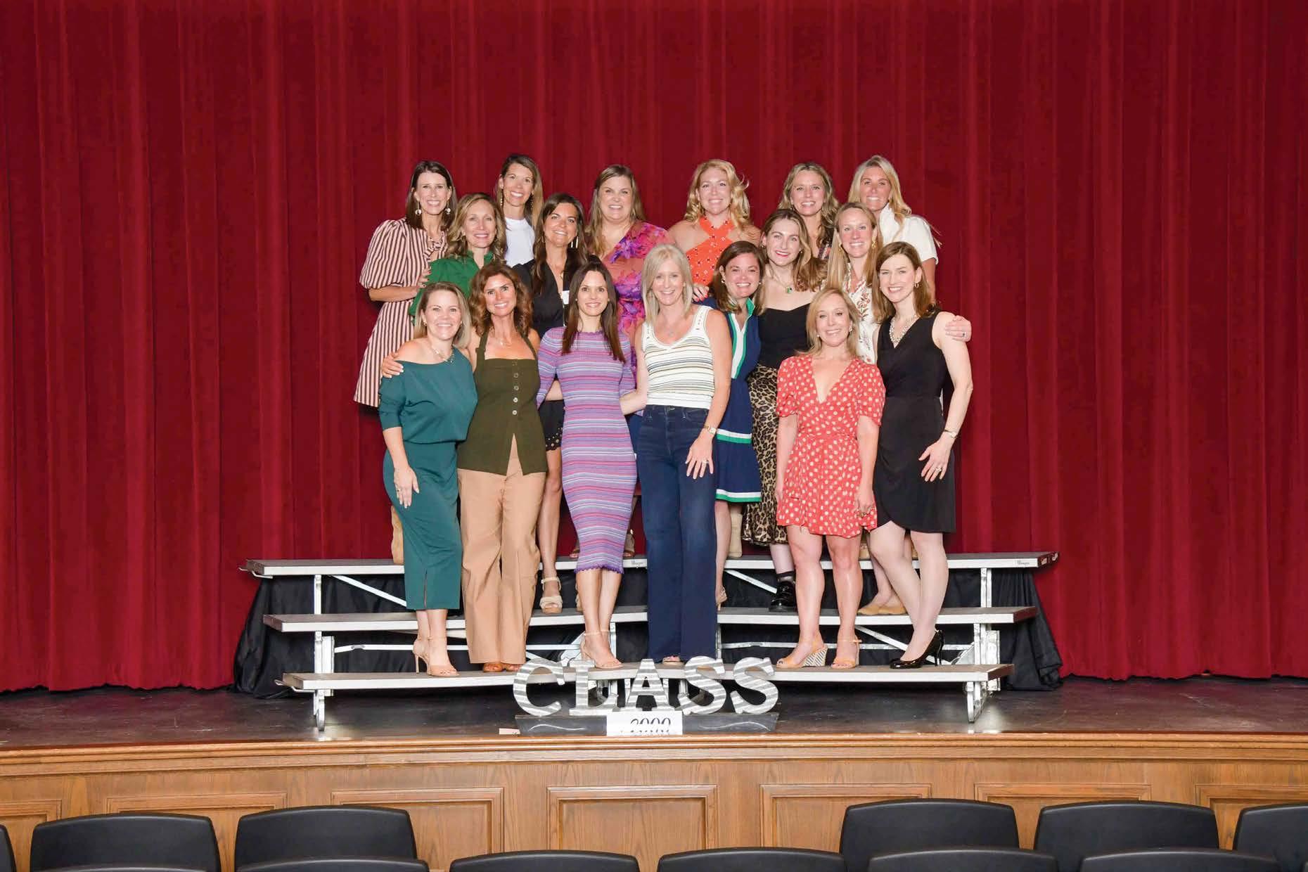 Front to Back, Left to Right: Irina Fawcett ’17, Allie Bruns Van Nest ’15, Sheila Triplett ’75, Claralyn Price Bollinger ’91, Beth Dean ’04, Tiffany Bentley Halkitis ’01, Angel Walters Likens ’96, Mary Anzalone Smith ’01, Maddie Harris Thompson ’08, Elizabeth Short Schenk ’00, Makie Knight Ryan ’08, Molly Dwyer Simonsen ’93, Sunny Sims ’98, Katie McLaughlin Marshall ’98, Mary Beth Sales Howell ’02, via Zoom Nikki Binz ’99 and Emily Milliman ’05