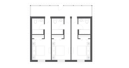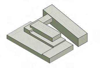 skylights to allow direct sunlight to enter and naturally light up the interior, a crawl space for a secondary entrance, and openings in the walls as lookout spots. The Hub is to be placed at Black Mountain College which is located on a lake with a big activities field. I found it important to place the building by the lake and to have openings on all sides so that from the inside you can see the lake and the big field. The use of concrete is so that The Hub can blend in with the environment and looks like it belongs. The Hub is sectioned into two areas, a walkway and a sitting area. With the many openings in all sides of the building, natural light can easily enter into the space and light the inteior.