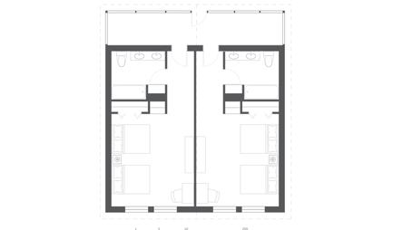 The goal of the Bed and Breakfast is to create a new community for both descendants of the Gullah Geechee and tourists to come to Sapelo Island and stay. The B&B is different than the traditional B&B in the fact that the rooms are divided into separate buildings. The B&B provides 3 different room plans to choose from. The first are the singles which are basic rooms and they are grouped in three. Then there are the doubles which have a bigger bedroom and bathroom than the singles. These are grouped into two. The last room type is the family room which has a much larger bedroom area for a larger number of people to stay. All of the private room buildings are accommodated with a screen porch which is a common design in the south. The biggest building and the one closest to the road is the main house which is