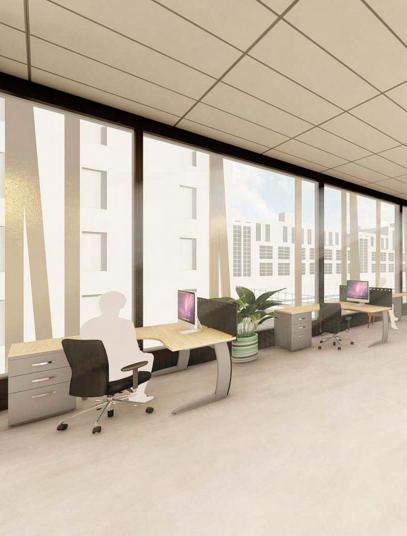 without actually slopping the terrace floors. To go further with the sloping effect, I also slopped the roofs of both the exhibit and office space. When it came to the design of the program I made the first two floors public and it includes areas such as an exhibit, auditorium, classrooms, and studios. The top floor is designated for the private office space and the private terrace. At the beginning of the design, the question “How are people going to get from the parking lot to the city hall”? which is located by the street, come up. To answer the question, I cut a chunk out of the first floor which creates a walkthrough and a courtyard for guests to enjoy. I not only wanted people to experience nature with the terrace but I also wanted to carry this theme into my building. In the art exhibit, I incorporated big windows so that when you’re inside you still feel like you’re outside with the sunlight and trees. I even included many windows in the office space that looks out to the public terrace below and into the rock quarry, which can be seen from that height.