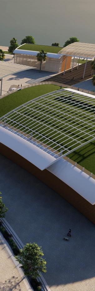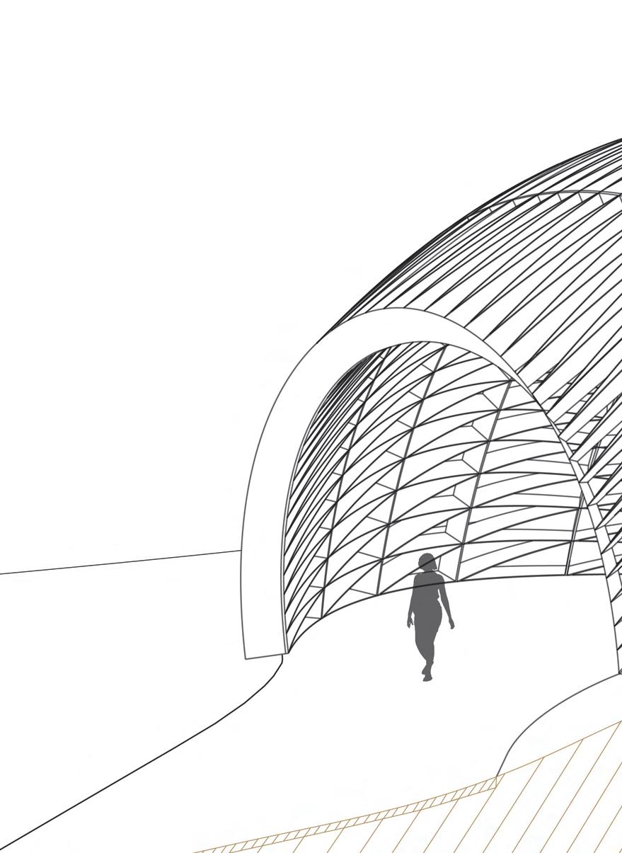 Architecture informs experience through an individual’s telescope-like perspective as they travel through each of the three sites and move along the central axis towards the sea. This perpendicular axis to the sea is bisected multiple times by a ‘lateral pull’ of landscape design elements that capture one’s attention and diverts movement to the left or right. The common ‘cultural promenade’ is usually parallel to the sea and our design references that cultural promenade by using subtle gardens and architectural design elements of a rounded form that is broken to divert one’s attention to create a distraction from the single movement pattern. The goal is to give space back to the community and to create space that cultivates a culture of shared and various experiences. The main program for the project is a thrust theatre and a black box. It is a space for both locals and tourists to visit and watch a show or hear someone