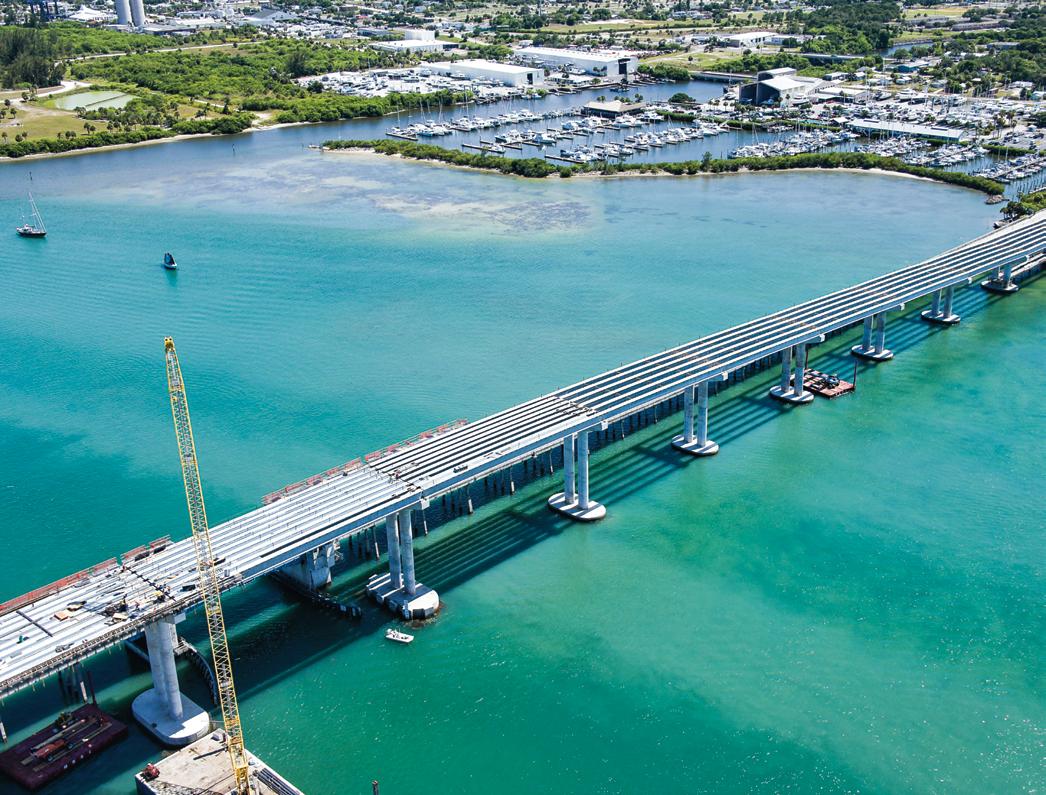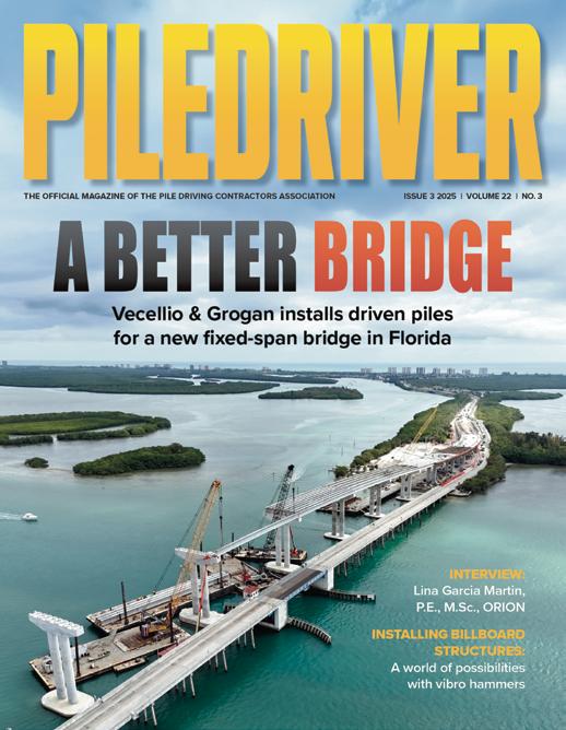 Vecellio & Grogan was recently highlighted in Piledriver Magazine (cover image below left) for its work on a new bridge on SR A1A in Ft. Pierce, FL. The high-rise structure has a vertical clearance of approximately 85 feet over the Indian River, part of the Intracoastal Waterway. When complete, the bridge will be 4,152 ft. long and have a variable width ranging from approximately 51 to 68 ft. The bridge will also include a 12-ft-wide bicycle/pedestrian path that will be part of the East Coast Greenway, a trail system that connects 15 states from Florida to Maine.