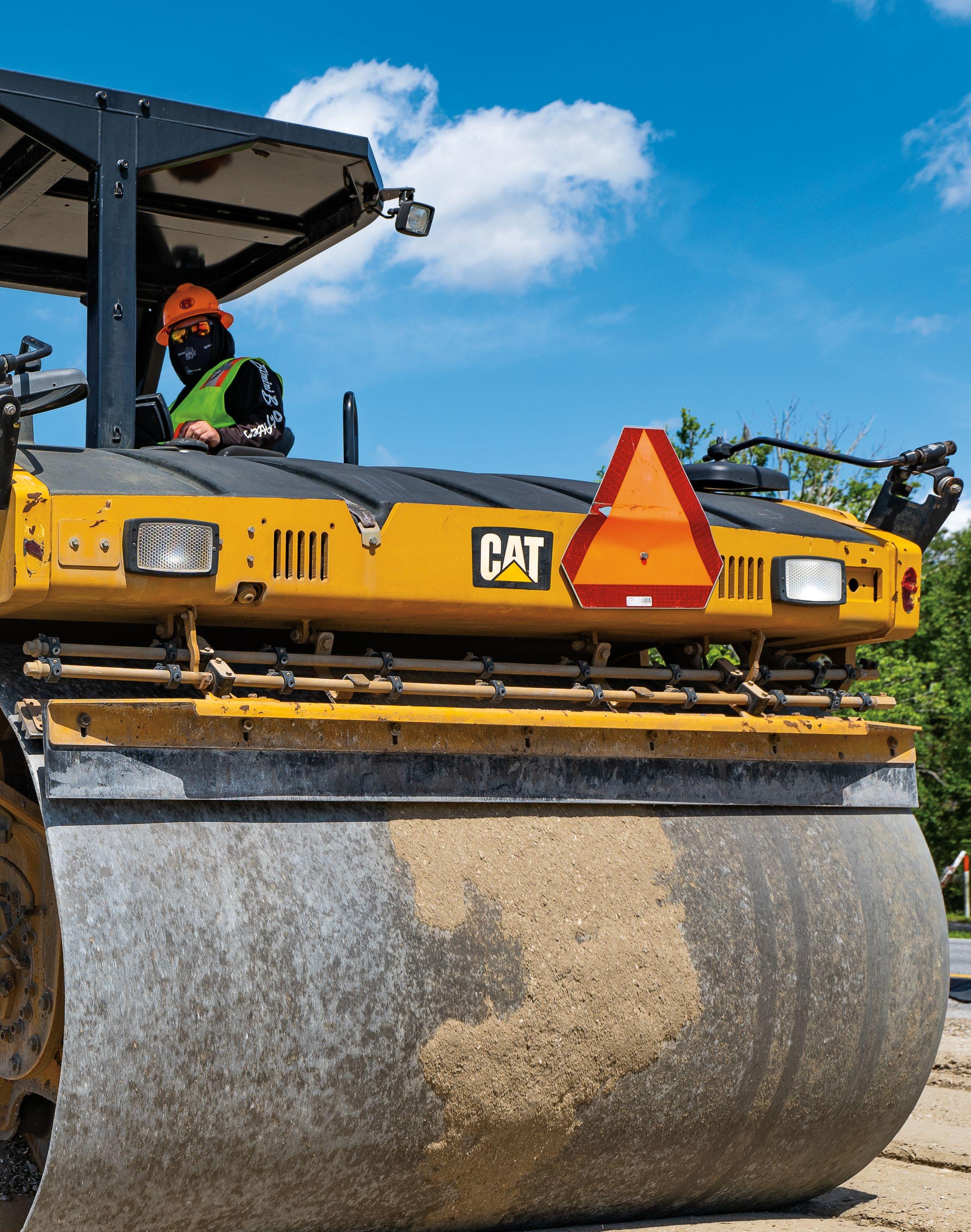 Katerina Steel, Loader Operator for Ranger Construction’s Central Division, is running a vibratory roller in preparation to lay roadway base and asphalt.