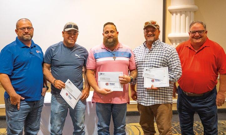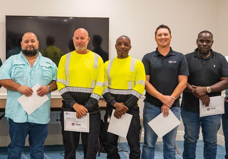 Receiving awards for Ranger on behalf of the South Region (photo above left) are (L to R) Greg Reilly, Edwin Jacobs, Matthew McCallum, Keurin Acosta and Brandon Houston. Receiving for Ranger’s Cental region (middle photo) are Patrick Drane and David Asselin. Receiving multiple awards for Vecenergy’s Port Everglades and West Palm Beach Terminals are (L to R) Cody Singleton, Jamar Rodriques, Vincent Vega, and Keurin Acosta.