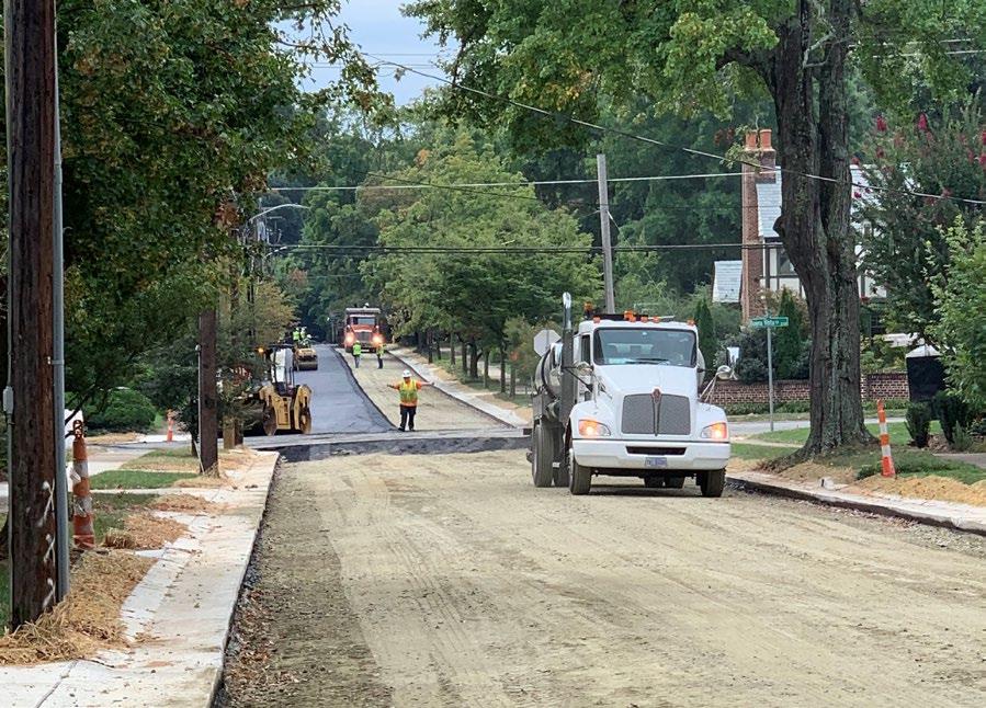 As part of a concrete street replacement project in Winston-Salem, NC, Sharpe crews remove the old existing concrete roadways, prepare to install new water lines (photos at left) and install new curb and gutter, stone. When that work is complete, crews will begin asphalt paving (below) to improve overall road quality throughout the city.