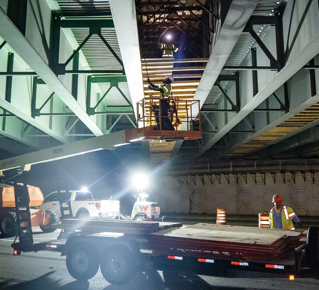 V&G Works Through The Night On Highway Overpass To Reduce Traffic Disruption