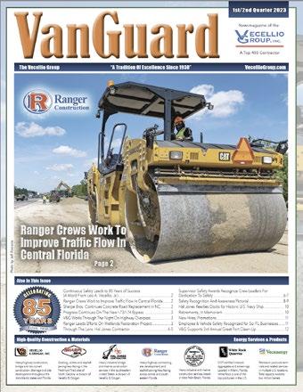 The Vecellio Group “A Tradition Of Excellence Since 1938” VecellioGroup.com 1st/2nd Quarter 2023 A Top 400 Contractor Newsmagazine of the Heavy/highway construction, bridge and box culvert construction, drainage and site development throughout the mid-Atlantic states and Florida. Heavy/highway contracting, site development, and asphalt paving/resurfacing across central and southeastern Florida. Heavy industrial bridge and marine construction services in the southeastern United States. A division of Vecellio & Grogan. DOT-certified limerock aggregates and screenings. Located in Miami, Florida, White Rock is one of the top producers in the U.S. Petroleum products terminals and related services in multiple U.S. locations. Total capacity exceeds two million barrels. Heavy industrial and marine construction services, based in West Palm Beach, Florida. Grading, utilities and asphalt paving/resurfacing in the Piedmont Triad area of North Carolina. A division of Vecellio & Grogan. Continuous Safety Leads to 85 Years of Success (A Word From Leo A. Vecellio, Jr.) 2 Ranger Crews Work to Improve Traffic Flow In Central Florida 2 Sharpe Bros. Continues Concrete Road Replacement In NC 2 Progress Continues On The New I-73/I-74 Bypass 3 V&G Works Through The Night On Highway Overpass 3 Ranger Leads Efforts On Wetlands Restoration Project 3 Through The Lens: Hal Jones Contractor 4-5 Supervisor Safety Awards Recognize Crew Leaders For Dedication To Safety 6-7 Safety Recognition And Awareness Pictorial 8-9 Hal Jones Readies Docks for Historic U.S. Navy Ship 10 Retirements, In Memoriam 10 New Hires, Promotions 11 Ranger & Vecenergy Recognized by Safety Council of Palm Beach 11 V&G Supports 3rd Annual Great Port Clean-Up 12 Photo by Jeff Romaine 1532212 YEARS 85 85 CELEB R ATINGR ATING E stab. 1938 High-Quality Construction & Materials Energy Services & Products Also In This Issue Ranger Crews Work To Improve Traffic Flow In Central Florida Page 2 Ranger Crews Work To Improve Traffic Flow In 2