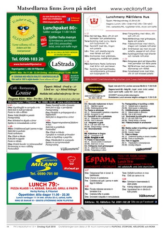 Lunch vardagar 11-14 inkl. dricka 33 cl, sallad, kaffe RING SÅ BAKAR VI • GRATIS UTKÖRNING INOM FILIPSTAD