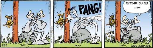 kontoret och väntade på att timmarna skulle gå. Vid midnatt ansåg han sig ha klarat sig levande, och tog sig hemåt. I dörröppningen möttes Erik av hans fru, och han började genast berätta: ”du anar inte vilken hemsk dag på jobbet jag har haft älskling”. Frun tittade på Erik och svarade: ”har DU haft jobbigt? Gissa hur jag har haft det! Dagen började med att jag fick bevittna hur brevbäraren blev påkörd och dog mitt framför ögonen på mig”.