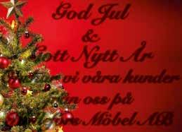 GodJul och Vi tackar alla våra kunder och vänner för det gångna året och önskar alla en riktigt God Jul & Gott Nytt År! 070-577 22 03 www.mdsbygg.se Vi önskar er en God Jul och ett Gott nytt år! 9 Finansiering via 12 el. 24 mån räntefritt Certifierad installatör Ulf Haraldsson info@uvp.nu GOD JUL och GOTT NYTT ÅR önskas alla gamla och nya kunder SEMESTERSTÄNGT 24/12 - 15/1 info@uvp.nu Ulf Haraldsson 0550 - 550 15 (kl: 9-13) info@sandras-serviceteam.se God Jul & Gott Nytt År