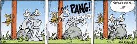 ser han till att få köra samma tur igen. Mycket riktigt, när han kommer till samma hållplats kliver Store Sten på, böjer sig fram och grymtar: "Store Sten inte betala!" Busschauffören reser sig i sin fulla längd, spänner ut bröstet, stirrar tillbaka rakt in i Store Stens ögon och säger hotfullt: "Nähä du. Och varför inte det då?"