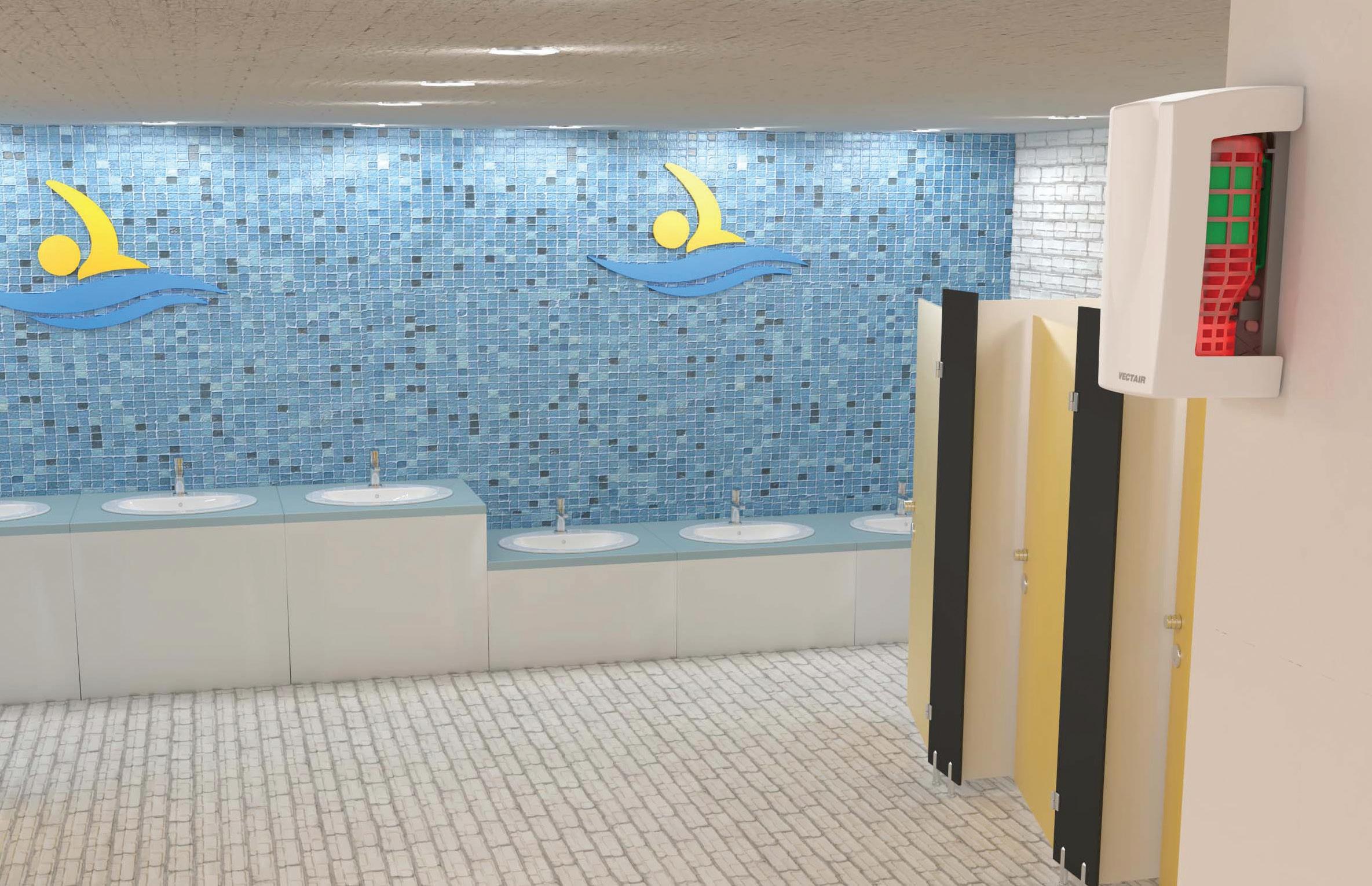• Ein Reinigungs- und Dosierspendersystem, das eine programmierbare Wartung für Waschräume ermöglicht