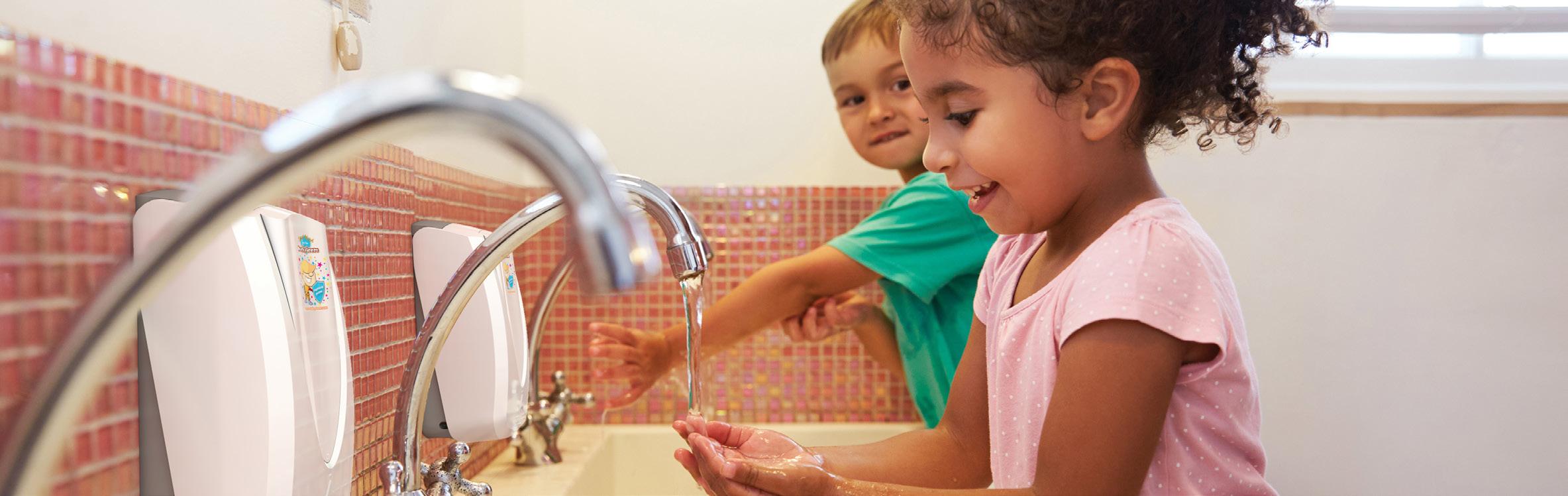 Unsere Waschraumlösungen, von Reinigungs- und Dosiersystemen bis zu Urinaleinlagen sorgen für saubere, frische und aufgeräumte Waschräume.
