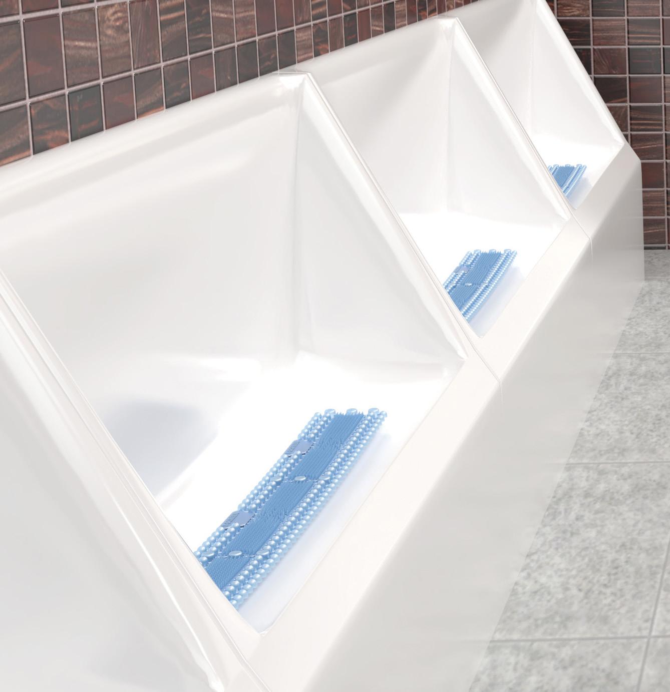 V-Screen® sorgt wirksam dafür, dass Abflüsse frei bleiben und Urinale sauber riechen
