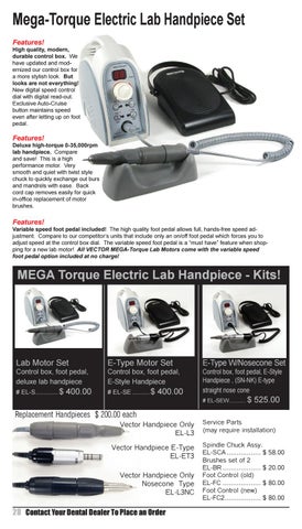 Service Parts (may require installation) Spindle Chuck Assy. EL-SCA.................. $ Brushes set of 2 EL-BR.................... $ Foot Control (old) EL-FC.................... $ Foot Control (new) EL-FC2................... $