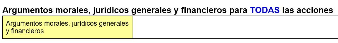 Hay que confirmar que se indican los argumentos MORALES, JURÍDICOS y FINANCIEROS generales para todas las acciones.