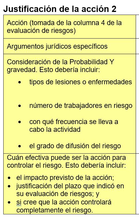 Si ya se hace lo suficiente para controlar el riesgo, habrá muchos controles, pero pocos o ninguno en la columna 4 (incluso podría darse el caso de que no fuera necesaria ninguna acción de control adicional)