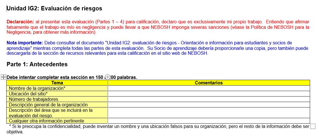 Hay que demostrar el conocimiento y la comprensión reales de los riesgos en la organización del alumno, y no ser solo un ejercicio teórico.