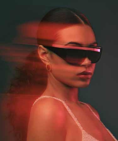 An expressive, luminous, futuristic frame blending fashion and technology. Inspired by superheroes, it becomes an object of personal transformation and visual affirmation.