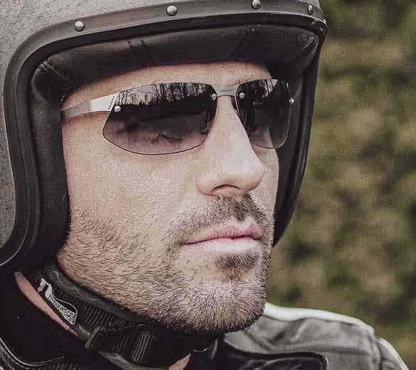 EMBLEMA BIKE by Aurigane, modello AERO, occhiali in acciaio da moto con asta speciale da sottocasco. Made in Italy.